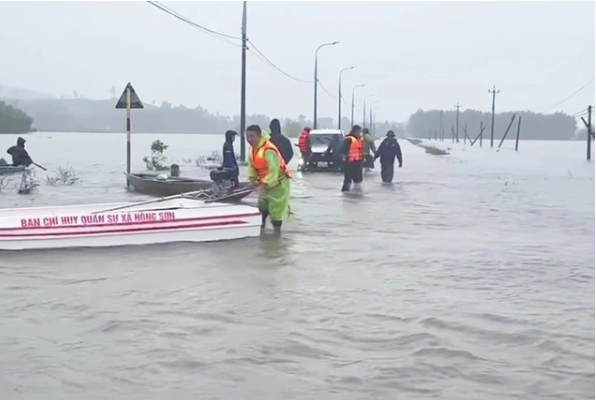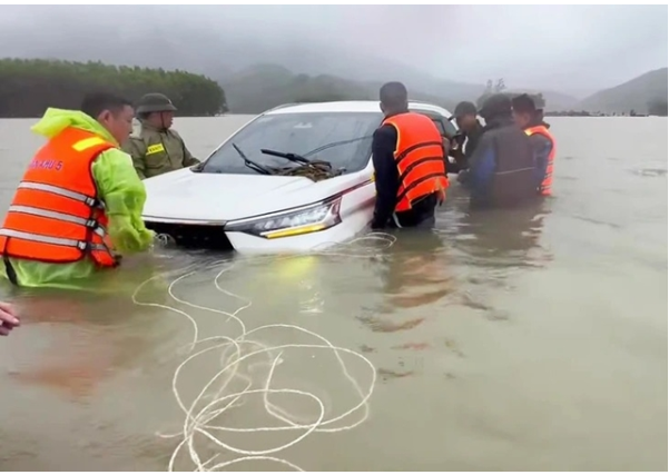 Theo báo Dân Trí, ngày 19/11, lực lượng cứu nạn cứu hộ xã Nông Sơn (tỉnh Quảng Nam cũ, nay thuộc TP Đà Nẵng) đã kịp thời ứng cứu một ô tô 7 chỗ bị chết máy và đối diện nguy cơ bị lũ cuốn trôi khi cố vượt qua đoạn đường đang ngập nước.