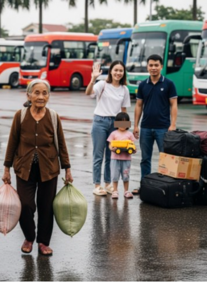 Bin không hiểu, nhưng cười tươi vì được ôm. Còn Hà—đứng cách đó vài bước—quay đi, lau vội dòng nước mắt. Cô không biết tương lai ra sao. Không biết có thể tha thứ hay không.