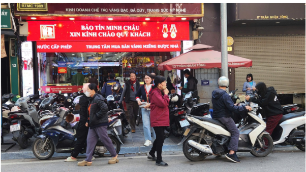 Nhân viên cửa hàng Bảo Tín Minh Châu (29 Trần Nhân Tông, Hà Nội) cho biết, sáng nay, cửa hàng bán ra tối đa 2 chỉ vàng nhẫn/người và khách hàng sẽ nhận được sản phẩm sau khi thanh toán. Nhân viên này cũng cho biết, trong sáng nay và hôm qua, lượng khách hàng đông hơn các ngày trong tuần. Đặc biệt, trong cuối giờ chiều hôm qua, cửa hàng có mở bán không giới hạn số lượng vàng cho khách hàng.