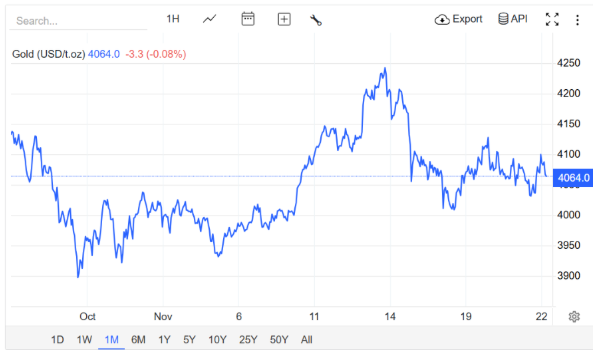 Trong tuần qua, giá vàng ghi nhận mức cao nhất trong tuần là 4.128 USD/ounce và thấp nhất là 4.008 USD/ounce.