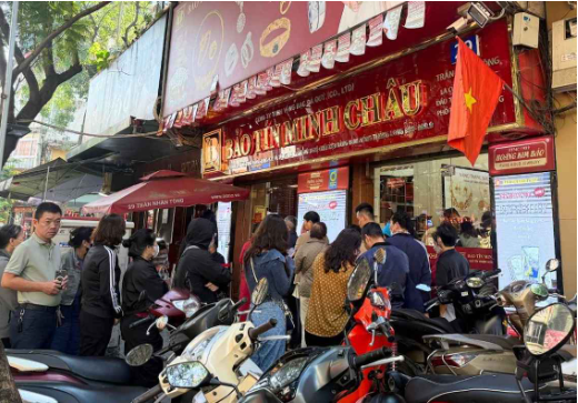 Nhân viên cửa hàng Bảo Tín Minh Châu (29 Trần Nhân Tông, Hà Nội) cho biết, sáng nay, cửa hàng bán ra tối đa 2 chỉ vàng nhẫn/người và khách hàng sẽ nhận được sản phẩm sau khi thanh toán. Nhân viên này cũng cho biết, trong sáng nay và hôm qua, lượng khách hàng đông hơn các ngày trong tuần. Đặc biệt, trong cuối giờ chiều hôm qua, cửa hàng có mở bán không giới hạn số lượng vàng cho khách hàng.