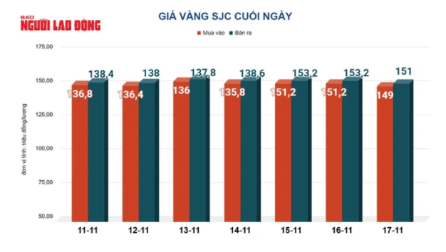 Lúc 6 giờ ngày 18-11 (giờ Việt Nam), giá vàng giao ngay trên thị trường quốc tế đã giảm tới 61 USD/ounce, xuống còn 4.046 USD/ounce so với mức đỉnh 4.107 USD/ounce ghi nhận trong phiên đêm qua. Giá vàng giao tháng 12 cũng mất 30 USD, còn 4.063 USD/ounce.