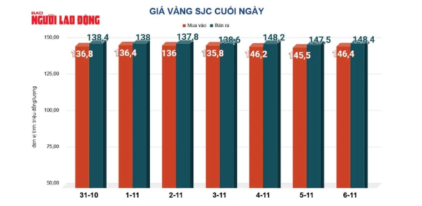 Khoảng 6 giờ ngày 7-11 (giờ Việt Nam), giá vàng giao ngay trên thị trường quốc tế xuống còn 3.978 USD/ounce, giảm tới 42 USD so với mức đỉnh cao nhất trong phiên giao dịch đêm qua là 4.020 USD/ounce. Giá vàng giao tháng 12 cũng giảm còn 3.986 USD/ounce.