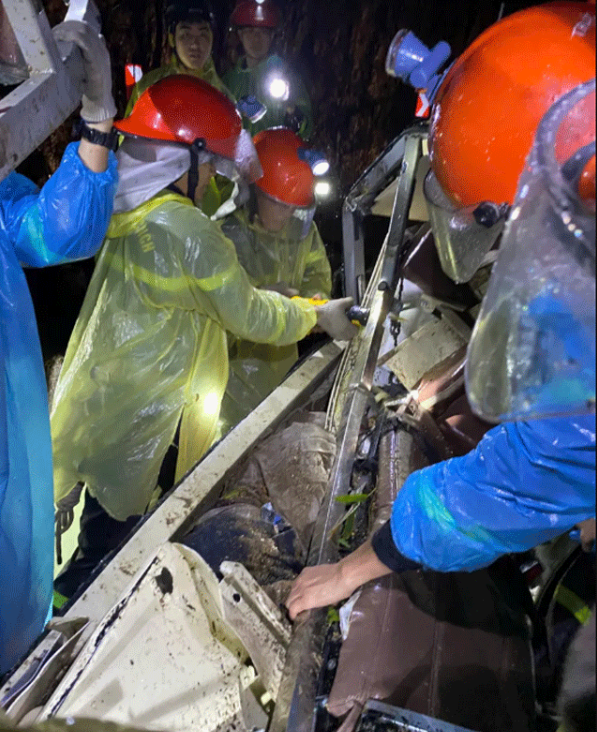 Theo Phòng CSGT, lượng đất đá lớn đổ thẳng vào phần hông phải xe theo hướng Đà Lạt – Nha Trang khiến phương tiện hư hỏng nặng. Thời điểm này, mưa lớn và tình trạng sạt lở tại km43 và km47 khiến lực lượng chức năng khó tiếp cận hiện trường. Đến khoảng 0 giờ, lực lượng cứu hộ mới tiếp cận được chiếc xe gặp nạn.