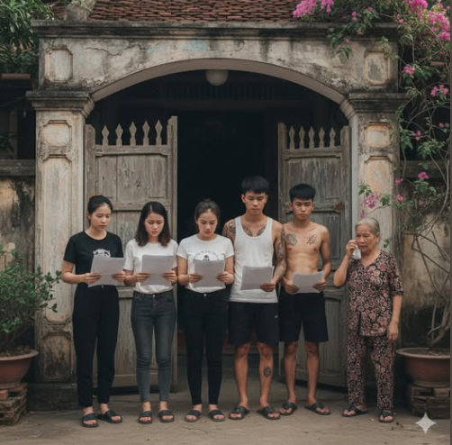– “Bọn con xin lỗi. Tụi con nói thế để thử lòng mẹ, nào ngờ mẹ thức trắng đêm. Đây là ba người bạn của tụi con — họ làm ở công ty luật, chuyên xử lý nợ xấu. Họ sẽ giúp mẹ thương lượng, cắt lãi, đòi lại hồ sơ vay.”