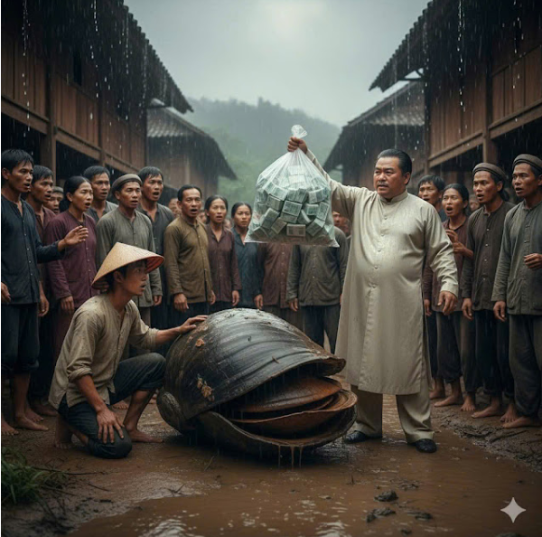 Tôi chưa kịp phản ứng thì một chiếc xe bán tải màu đen phóng tới, thắng gấp ngay sát bờ sông. Người bước xuống là ông Hội, người giàu nhất vùng, chủ cả nhà máy xay lúa và trại nuôi heo. Áo sơ mi trắng, quần tây đen, giày bóng lộn – giữa bùn đất, trông ông ta như một kẻ đến từ thế giới khác.