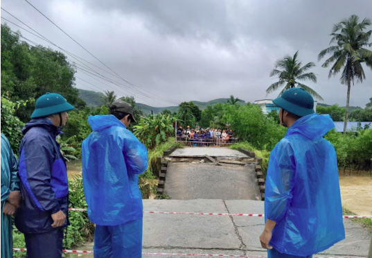 Sáng 2-11, Cầu Cây Sung ở xã Bình Minh, tỉnh Quảng Ngãi bị lũ cuốn sập, chia cắt khoảng 270 hộ dân.